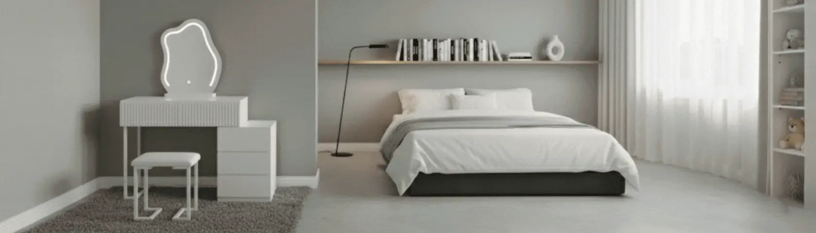 The dressing table with mirror includes ample drawer storage for your cosmetics, skincare, and accessories, while the movable cabinet gives you added flexibility. Built with smooth slides and a high-definition mercury mirror, this setup combines premium function with modern flair. Paired with a cushioned PU padded stool and generous legroom, it’s ideal for daily routines in style and comfort.